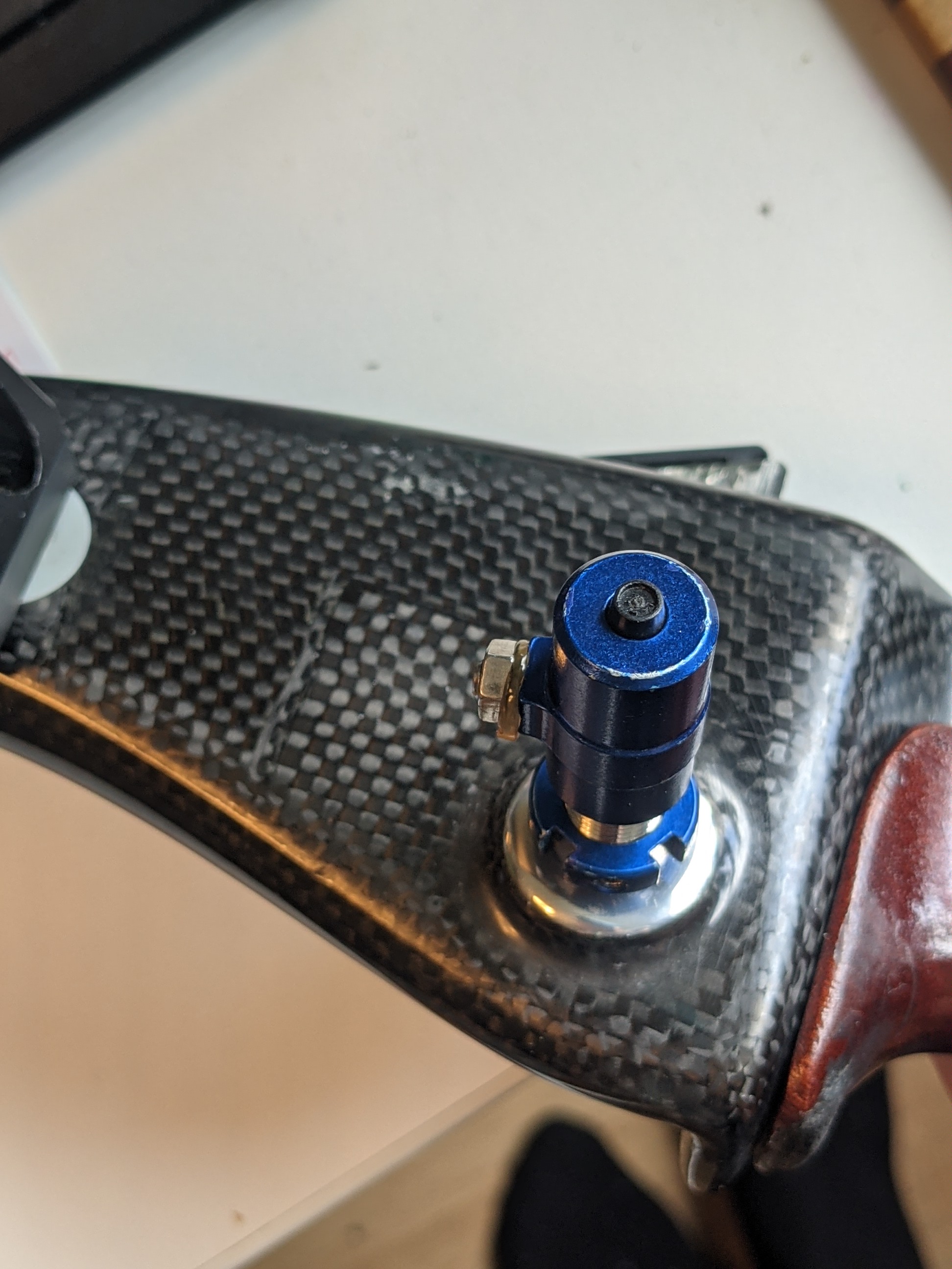 My tiller bolts are shiny silver aluminium. I’ve always been slightly envious of the brightly coloured ones that Win&Win and some other brands sell.